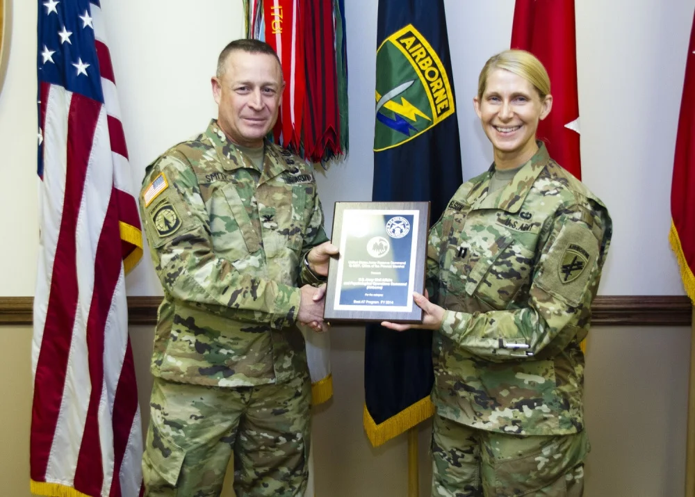 FORT BRAGG, N.C. -- For the second straight year, the U.S. Army Civil Affairs and Psychological Operations Command (Airborne) was recognized as the U.S. Army Reserve Command's Best Antiterrorism Program during a ceremony held Oct. 26 here.